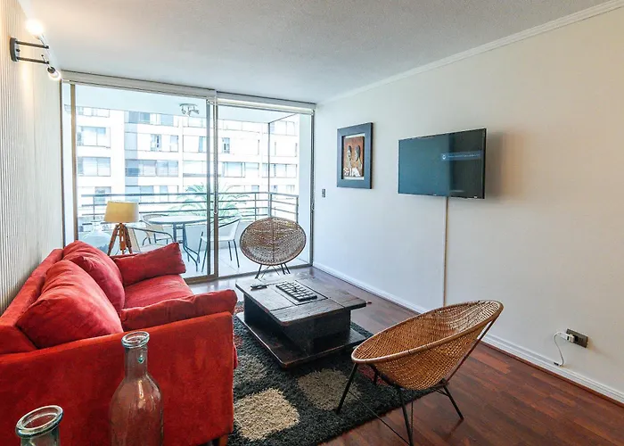 Para aproveitar as suas ferias em Santiago, fique no o apartamento Hom I 2D2B I Las Condes I Parking I Wifi I Aire Ac Santiago de 65 m², que está a aproximadamente 10 minutos a pé de Mallplaza Los Dominicos e a uma distância de apenas 1 metros do Centro Comercial Apumanque. Este apartamento oferece vista para a cidade e tem pátio.